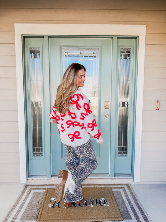 Bow Peep Eyelet Knit Dress in Pink and Green
