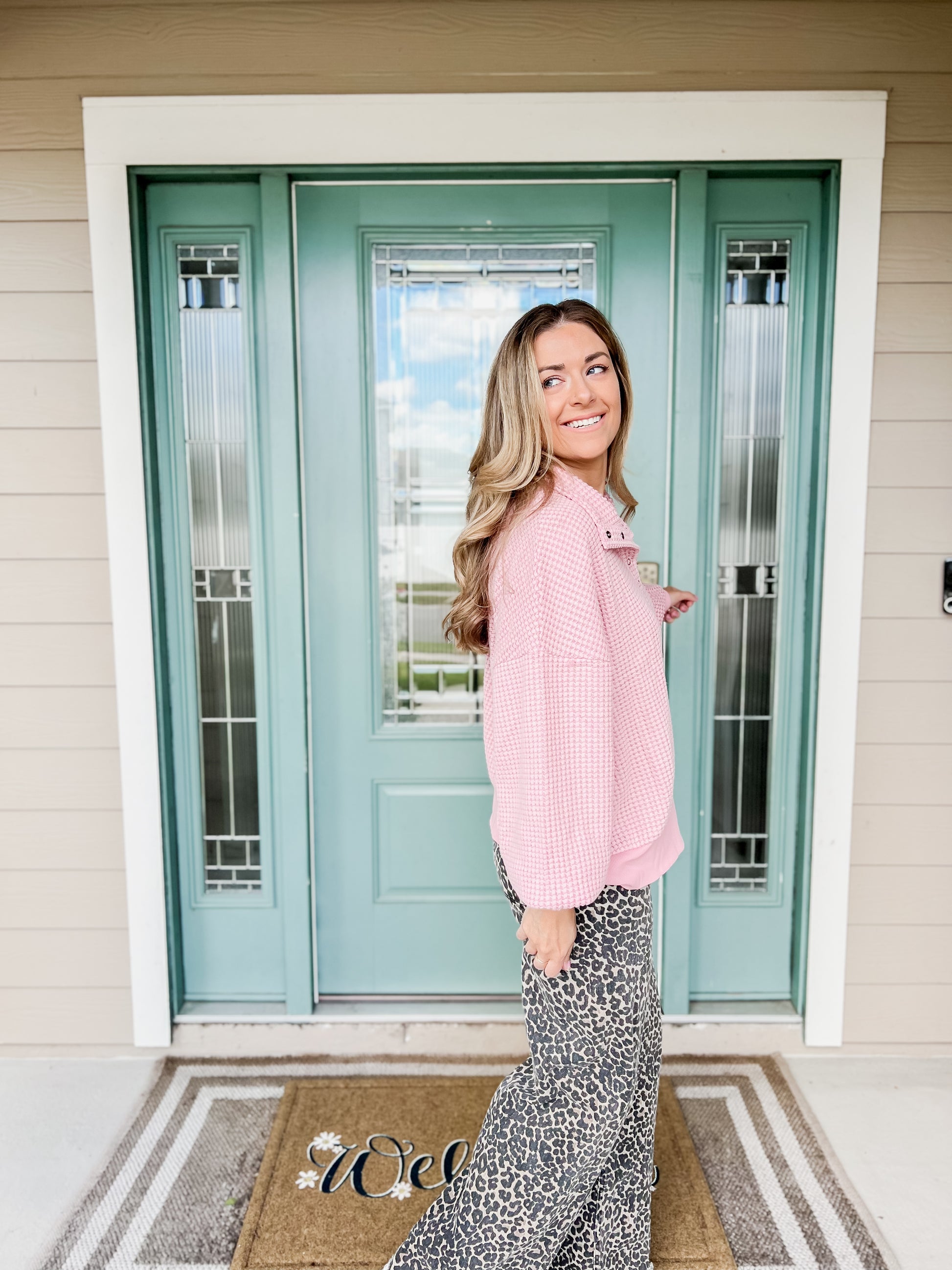 Meet your new everyday obsession! The Waffle Crush Knit Pullover is all things comfy, cute, and effortlessly stylish. Made from a cozy pink waffle knit, it’s the kind of top you’ll want to live in — soft, relaxed, and oh-so-easy to throw on and go.