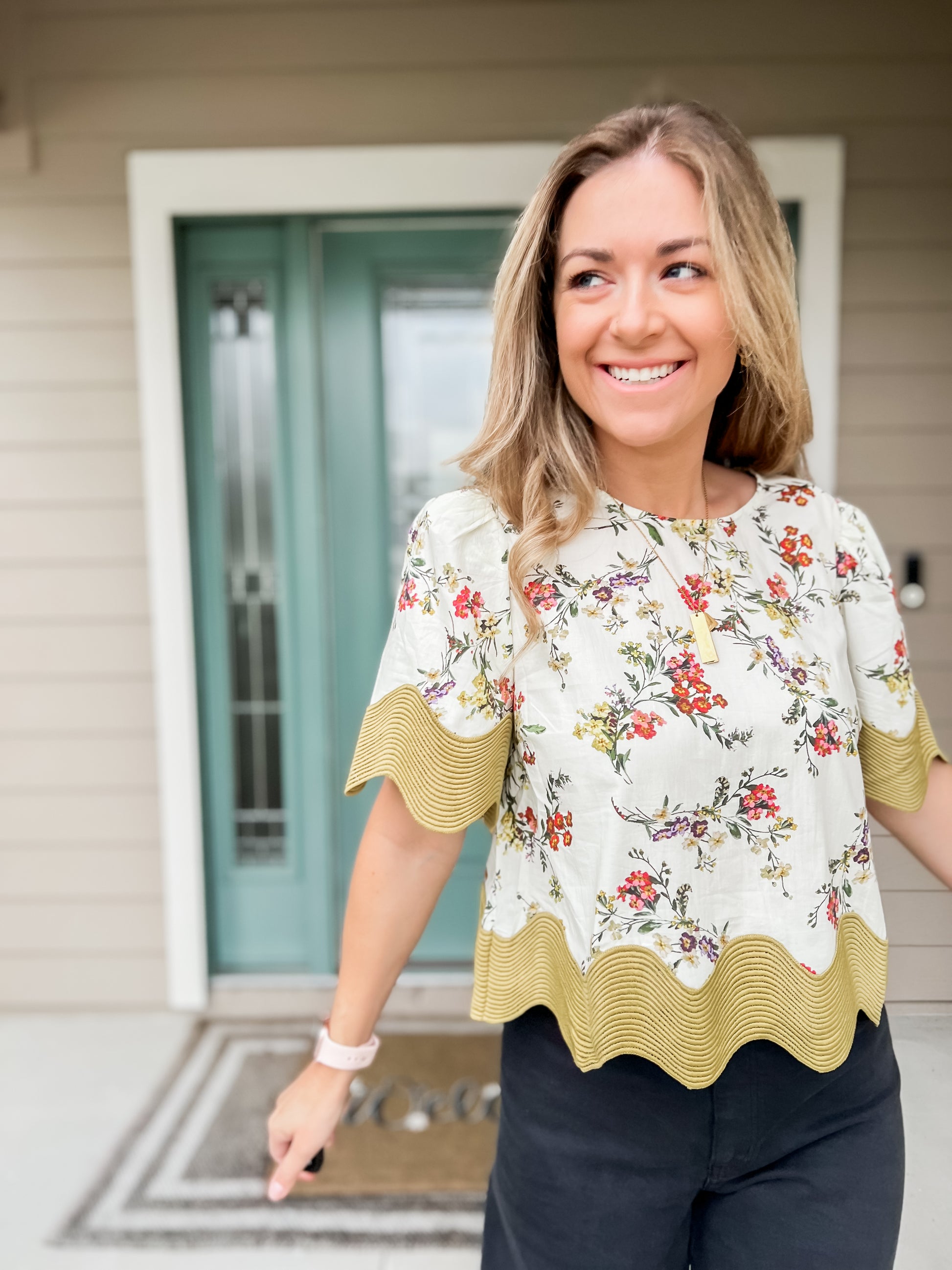 Let your style bloom with our Wildflower Wave Top! This dreamy piece features a modern wavy hemline that dances with every move and a whimsical floral pattern that’s pure sunshine in fabric form.